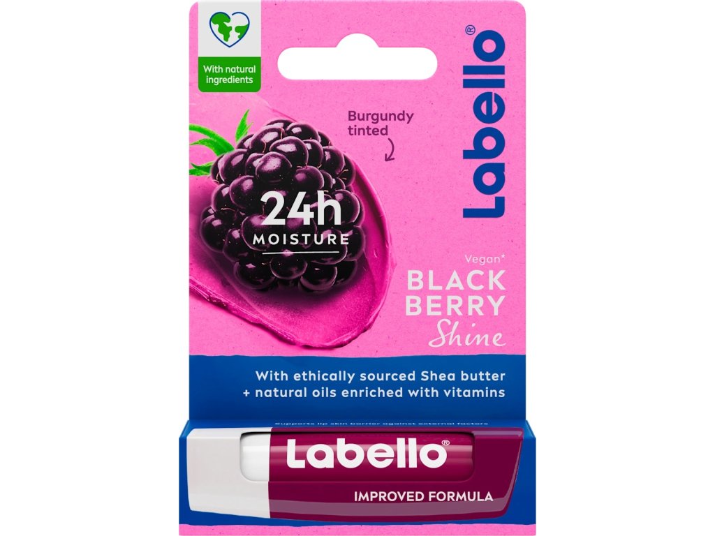 Kouzlo hydratace a lesku zažijete s tónovacím balzámem na rty Blackberry Shine od značky Labello! Tento balzám je obohacen o bambucké máslo a osvěžující ostružinové aroma, které dodá vašim rtům jemný bordó lesk. Chrání rty před chladem, větrem a suchým vzduchem, což je ideální pro každodenní použití. S 24hodinovou hydratací, klinicky testovanou, si můžete být jisti, že vaše rty zůstanou jemné a vyživené po celý den. Navíc, jeho veganské složení neobsahuje žádné ingredience živočišného původu a výrobek je 100 % klimaticky neutralizovaný. Dopřejte svým rtům péči, kterou si zaslouží, s Labello tónovacím balzámem na rty Blackberry Shine!