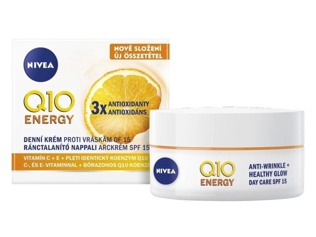 Unavená a mdlá pleť si zaslouží víc než jen hydrataci – potřebuje povzbuzení, které ji rozzáří a ochrání před předčasným stárnutím. Energizující denní krém Nivea proti vráskám Q10 kombinuje sílu koenzymu Q10, vitaminu C a guarany, aby vaší pleti dodal svěžest, pružnost a viditelně redukoval jemné vrásky. Lehká, ale výživná textura se rychle vstřebává a zanechává pleť hebkou, hydratovanou a plnou energie. Díky ochrannému faktoru SPF 15 navíc chrání před škodlivým UVA/UVB zářením, které je jednou z hlavních příčin předčasného stárnutí. Už po prvním použití je pleť osvěžená, zářivější a působí zdravěji. Krém je vhodný na každodenní použití, zejména pro pleť, která působí unaveně nebo ztrácí jas.