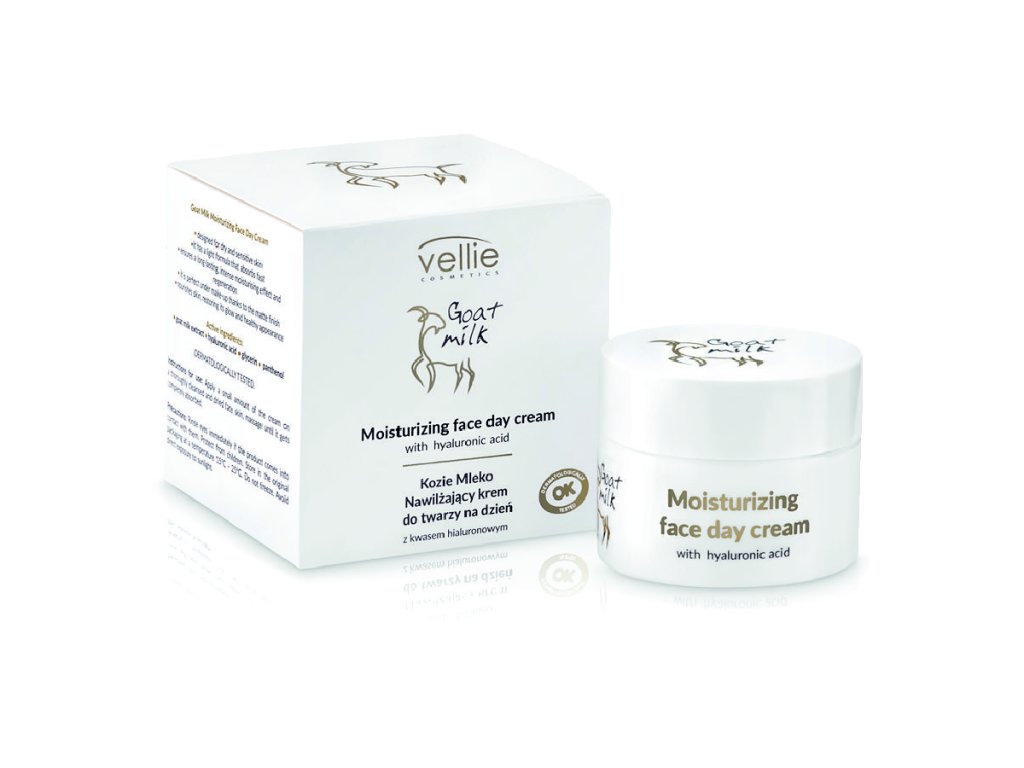 Vellie kozí mléko - denní hydratační krém s kyselinou hyaluronovou, 50 ml