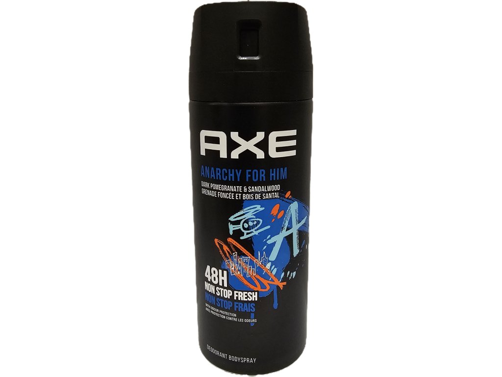 Axe Anarchy For Him je deosprej s kombinací svěží ovocné vůně a sladkého santalového dřeva a bílého jantaru. Axe Anarchy For Him evokuje Axe vůni, která je neodolatelná a návyková.