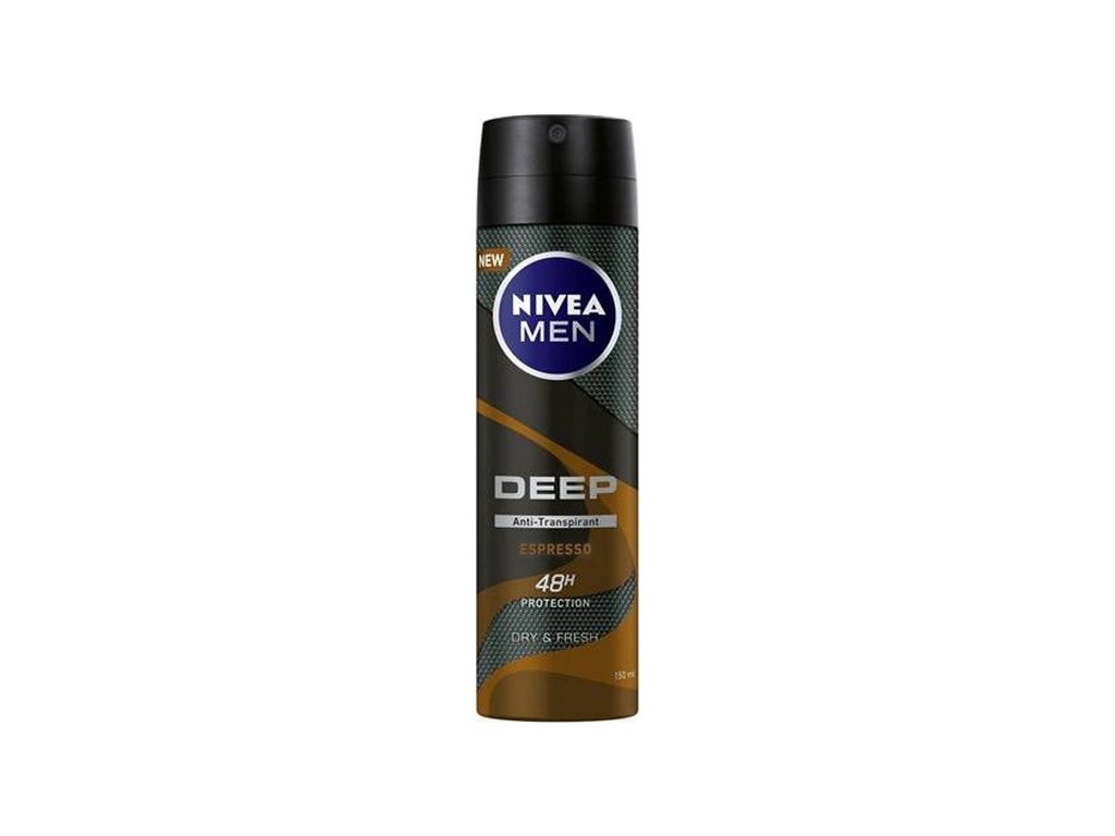 Mějte vše pod kontrolou po celých 48 hodin. Na stres a nepříjemné pocity kvůli potu a tělesnému pachu můžete zapomenout. Speciální antibakteriální složení totiž ničí bakterie způsobující nepříjemný zápach. Od teď vás bude doprovázet pouze mužná přitažlivá vůně espressa a cedrového dřeva. Zůstaňte elegantní a nad věcí v každé situaci. Zvolte - NIVEA MEN Sprej antiperspirant Deep Espresso.