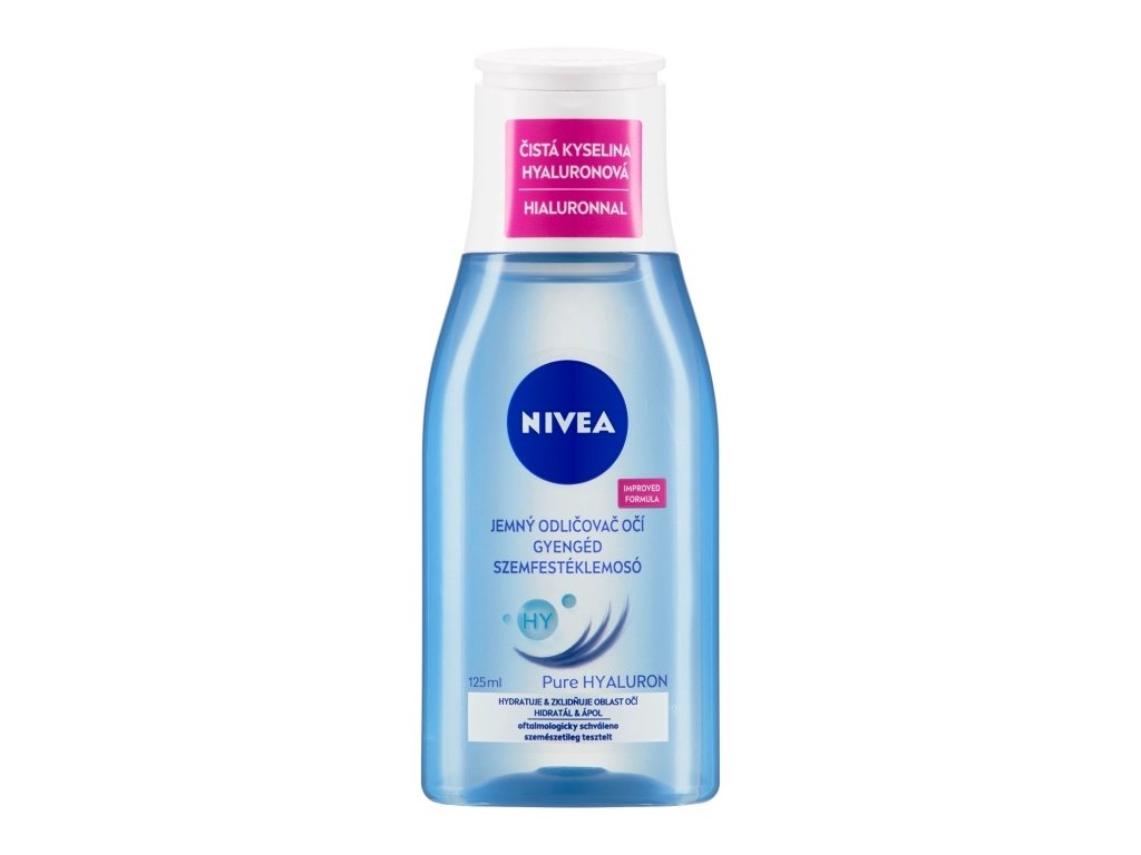 Nivea jemný odličovač očí odstraňuje make-up a řasenku. Složení s kyselinou hyaluronovou hydratuje a zklidňuje citlivou oblast očí.