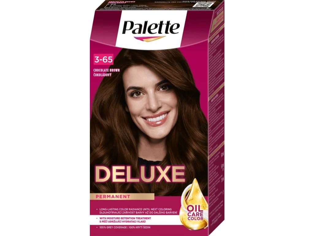 Barva Palette Deluxe nabízí luxusní syté a dlouhotrvající barvy se 100% krytím šedin. Díky intentzivním mikro olejům pronikajícím hluboko do struktury vlasu, kde zanechávají vysoce koncentrované barevné pigmenty, zaručuje zářivý odstín až šest týdnů. O vlasy navíc pečuje díky dvojitému systému hloubkové péče s přírodními oleji, který zenechá vlasy vitální a hebké nejen ihned po obarvení, ale také v následných týdnech. Odstín je vhodný až po středně šedivé vlasy.