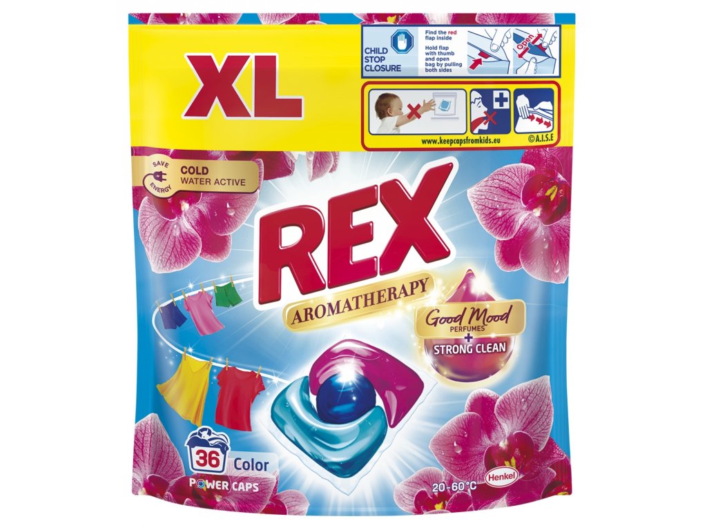 Rex Power Caps Color je jedinečný předdávkovaný prací prostředek na barevné a tmavé prádlo, který kombinuje sílu tří benefitů v jedné kapsli pro hygienickou čistotu. Díky unikátní technologii zajišťuje spolehlivé odstranění skvrn již při nízkých teplotách a zářivé barvy vašeho oblečení. Zároveň jej provoní svěží vůní esenciálních olejů.