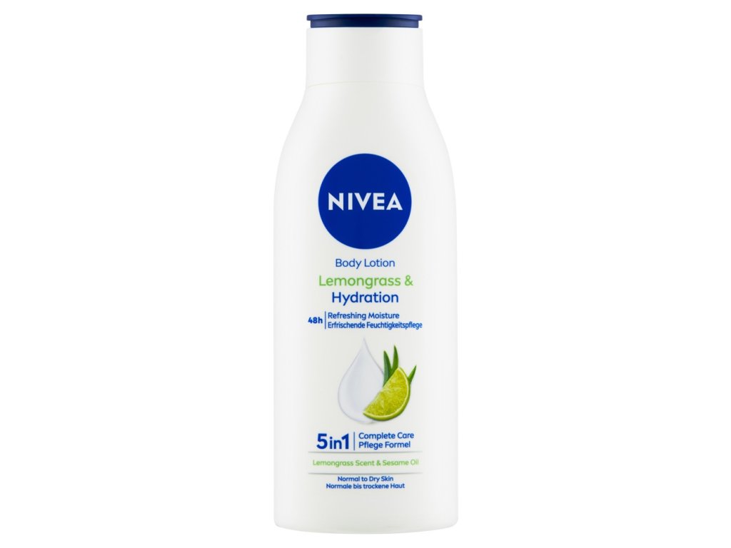 Nivea Lemongrass & Hydration tělové mléko pro normální až suchou pokožku je obohacené o Intense Moisture Serum, sezamový olej a vůni citronové trávy.