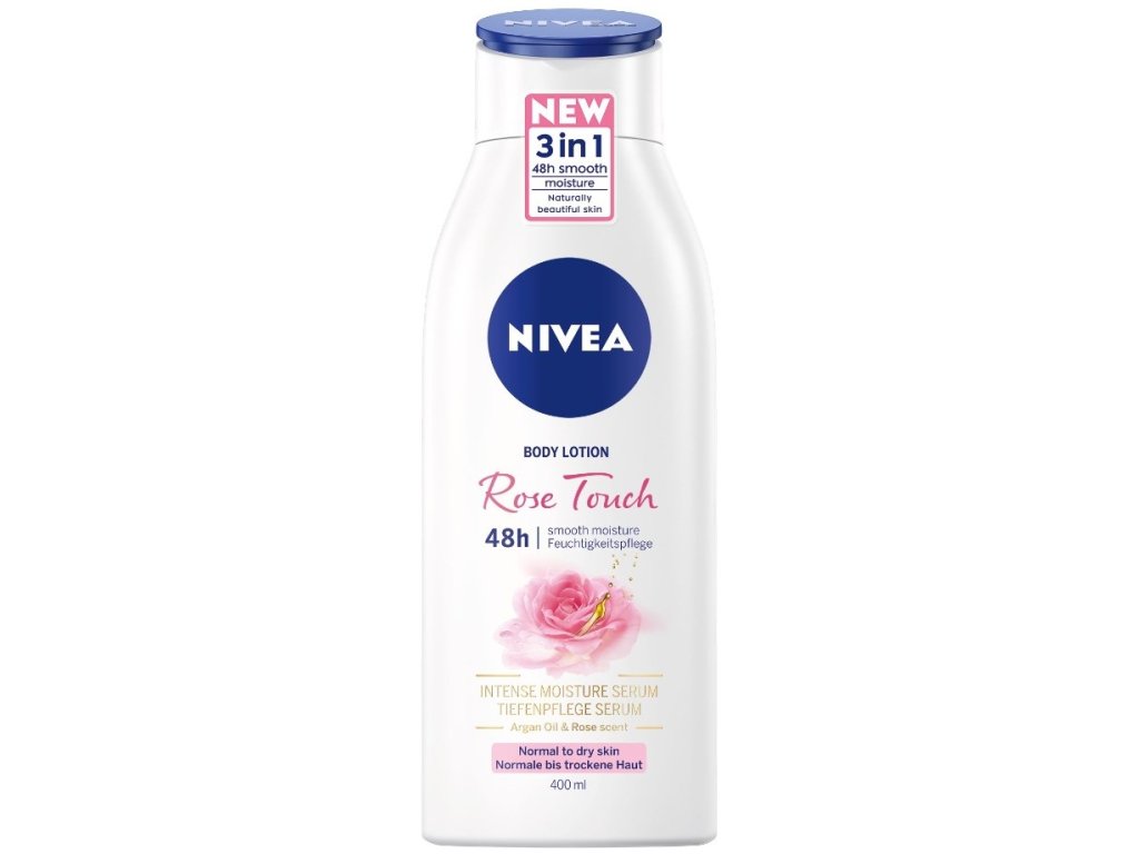 Nivea Tělové mléko Rose Touch pro normální až suchou pokožku je obohacené o Intensive Moisture Serum a přírodní arganiový olej pro hydrataci pokožky po celých 48 h. Ultra lehké složení se smyslnou vůní okvětních lístků růží se rychle vstřebává a zanechá pokožku hebkou a vláčnou - již po 1. použití.