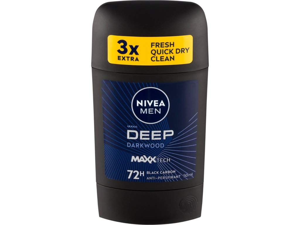 NIVEA MEN Deep tuhý antiperspirant zaručuje spolehlivou ochranu proti pocení, která trvá až 72 hodin. Účinnost antiperspirantu podporuje NIVEA MEN Care komplex, který zároveň aktivně působí proti podráždění pokožky.